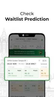உறுதியான ரயில் பயணச்சீட்டுகளைப் பெறுவதற்கான உங்கள் வாய்ப்புகளை ConfirmTkt பன்மடங்கு அதிகரிக்கிறது. எங்களின் தனித்துவமான ConfirmTkt மாற்று வழிகள் மற்றும் துல்லியமான முன்னறிவிப்பு அம்சங்கள் மூலம், காத்திருப்புப் பட்டியலில் உள்ள டிக்கெட்டுகளையும் உறுதிப்படுத்த முடியும். உங்கள் போர்டிங் அல்லது இறங்கும் இடங்களை மாற்றுவதன் மூலம் மறைந்திருக்கும் உறுதியான டிக்கெட்டுகளைக் கண்டறியுங்கள் அல்லது ரயில் மற்றும் பேருந்து இணைப்புகளைப் பயன்படுத்தி உறுதிப்படுத்தப்பட்ட பயணத்தைத் திட்டமிடுங்கள். மேலும், இலவச ரத்து செய்யும் வசதியுடன், நீங்கள் பயணச்சீட்டை ரத்து செய்தால் உடனடியாக முழுப் பணத்தையும் திரும்பப் பெறுங்கள். உங்கள் ஏற்கனவே உள்ள IRCTC உள்நுழைவைப் பயன்படுத்தி எளிதாக முன்பதிவு செய்யலாம், தட்கல் முதல் மூத்த குடிமக்கள் ஒதுக்கீடுகள் வரை அனைத்து வகைகளும் இதில் அடங்கும். நேரலை ரயில் நிலை, PNR நிலை மற்றும் ரயில் கால அட்டவணையை உடனுக்குடன் அறிந்துகொள்ளலாம். பயணத்தின்போது சுவையான உணவை ஆர்டர் செய்யும் வசதியும் உள்ளது.