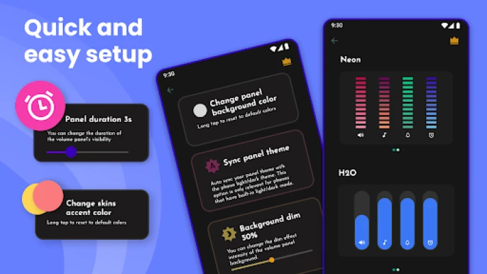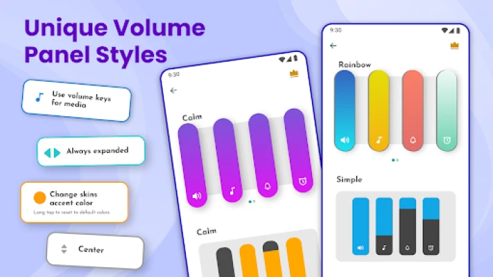 Custom Volume Panel Styles ஆப் மூலம் உங்கள் வால்யூம் ஸ்லைடர் பேனலை நவீன ஸ்டைல்கள் மற்றும் தீம்களுடன் தனிப்பயனாக்குங்கள். பிரத்யேக வடிவமைப்புகள், அழகிய வால்யூம் ஸ்லைடர்கள் மற்றும் உள்ளுணர்வுடன் கூடிய UI மூலம் தனித்துவமான ஒலி கட்டுப்பாடு அனுபவத்தைப் பெறுங்கள். பெரும்பாலான ஸ்கின்கள் இலவசம். உங்கள் UI ஐ விரும்பியபடி மாற்றுங்கள்.