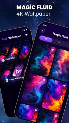 Fluid Magic: 4D Live Wallpaper மூலம் உங்கள் போனுக்குப் புதிய தோற்றத்தையும் புத்துணர்ச்சியையும் தாருங்கள். மயக்கும் திரவ விளைவுகள் மற்றும் மென்மையான, யதார்த்தமான 3D அசைவுகளுடன் உங்கள் திரையை ஒரு அசையும் கலைப்படைப்பாக மாற்றும். துடிப்பான சுழல்கள் முதல் மென்மையான அலைகள் வரை, உங்கள் திரையை அழகாக்குங்கள்.