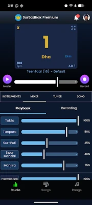 SurSadhak செயலி இந்திய பாரம்பரிய இசையை பயிற்சி செய்ய உதவும் இறுதி கருவி. தபலா, தம்புரா, சுர் பேட்டி, ஸ்வர் மண்டல், மஞ்ஜீரா போன்ற உள்ளமைக்கப்பட்ட கருவிகளுடன் இசையமைக்கலாம், பதிவு செய்யலாம், பல தடங்களைச் சேர்க்கலாம் மற்றும் பாடல்களை உருவாக்கலாம். உங்கள் இசையைப் பகிர்ந்து கொள்ளுங்கள்.
